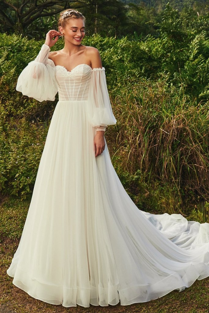 Sleeve detailing can really make the difference to a gown, especially if the gown is a classical, simple design. Bell sleeves or big puffy sleeves are seeing a return this year along with detachable sleeves; which are perfect if you are wearing your gown through to the evening.